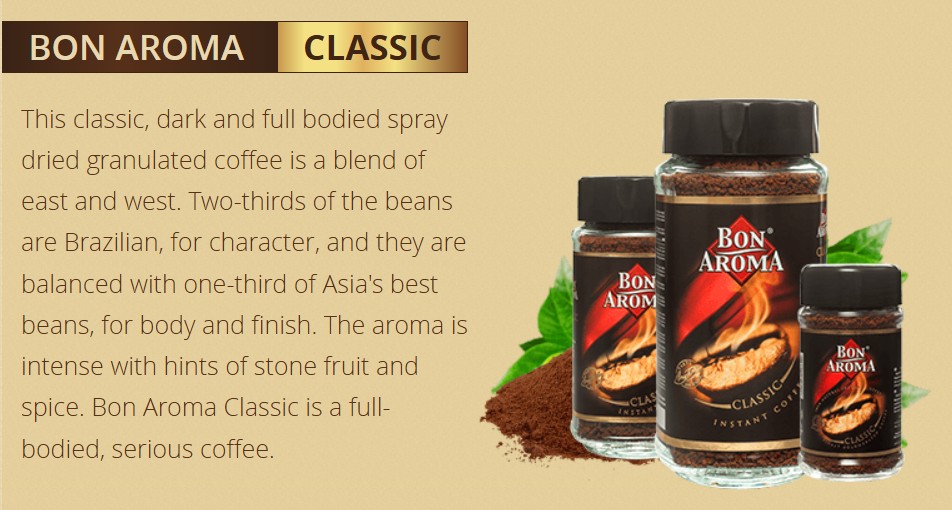 Start your day with the timeless flavor of Bon Aroma Classic Instant Coffee 100g — a perfect blend for true coffee lovers. Made from carefully roasted coffee beans, Bon Aroma Classic delivers a rich aroma and smooth, full-bodied taste that makes every sip memorable.