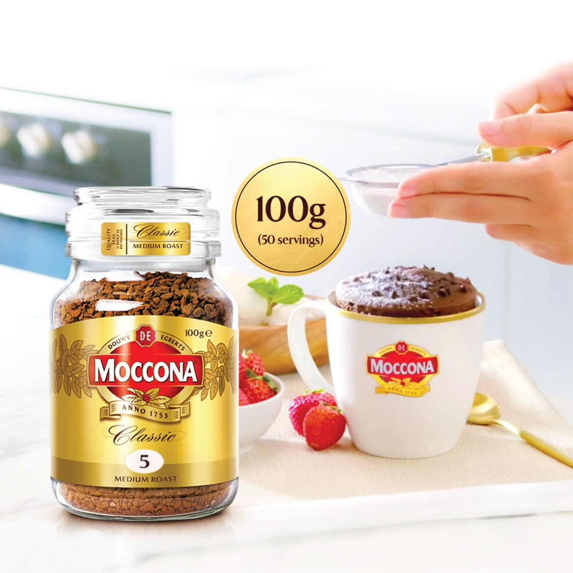 Welcome to the world of Douwe Egberts Moccona Classic 5 Medium Roast Instant Coffee. In the Moccona Intensity Range, the Classic No. 5 is known as “The Happy Medium”—striking the ideal balance between rich flavour and smooth texture.